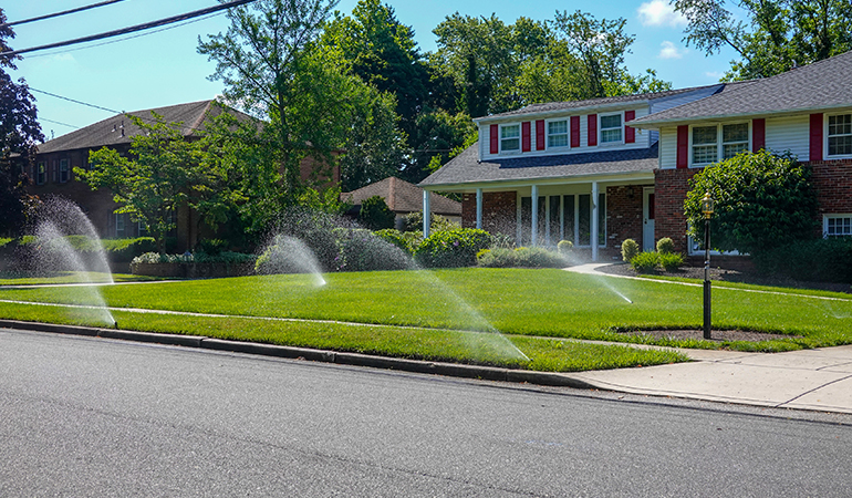 A healthy lawn, garden, and landscape needs a well-planned and maintained watering system to remain green and growing. To keep your yard and landscaping looking at its best, an irrigation system with automatic sprinklers is the best solution. Timed irrigation keeps your grass green throughout the summer and your garden plants and trees watered and healthy year-round. It will save you time and energy in watering your lawn, and save you from having to move a lawn sprinkler around manually.